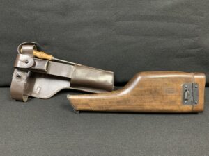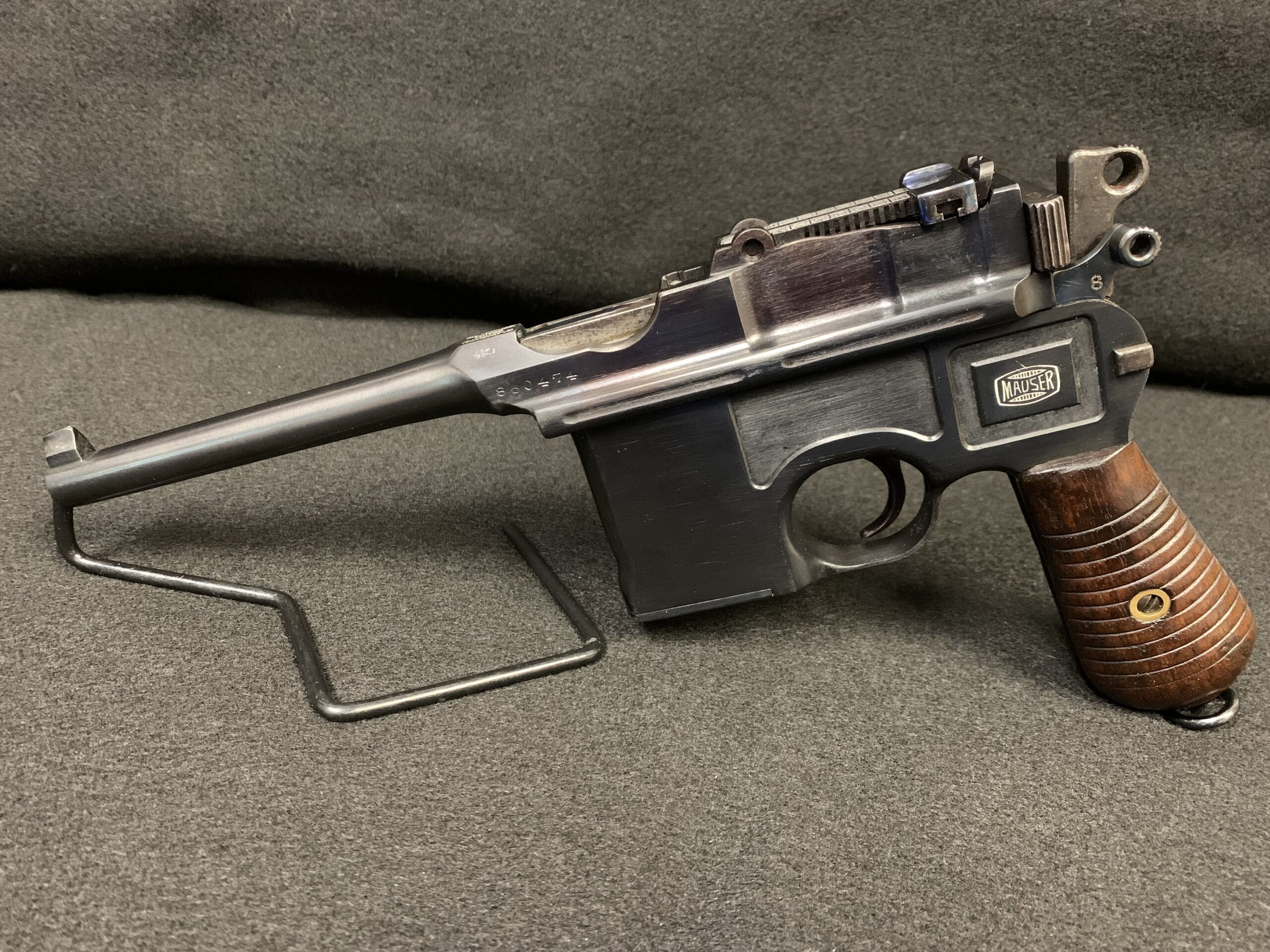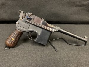 This beautiful 1932 broom handle Mauser in 7.63x25mm caliber, 5″ barrel comes equipped with wooden holster/shoulder stock, leather strapping and a cleaning rod. This unique pistol was professionally refinished at some point in its life. A wonderful addition to any collection and each firm of fun to shoot. The price is $1850.