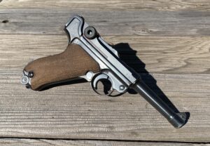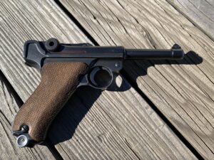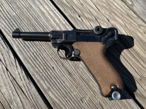 This P08 Luger code byf Mauser is serial # 124x. The chamber is dated 1942 with its original fxd marked un-numbered magazine. This is a number matching all original 95%+ condition WWII Luger in 9mm caliber. It is a wonderful addition to any military collection. The price is $1895.