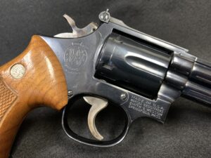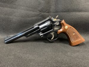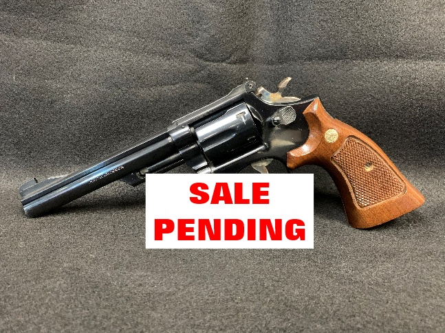This classic Smith and Wesson Model 19-4 .357 magnum with a 6-inch pinned barrel was manufactured in 1980. This revolver remains in 98% condition with no holster wear, and the grips are in like new condition. This Model 19 is the perfect balance of .38/.357 magnum power on well-balanced medium frame. The price is $895.