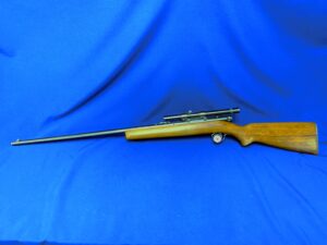 This sweet little Winchester 74 3rd year production gun, serial number 698xxx remains in excellent overall condition. It comes with a period correct Weaver scope & T-1 mount. This .22 caliber rifle was manufactured in 1941 and is tube fed from the butt stock. This beautiful classic semi-automatic is a joy to shoot. The price is $325.